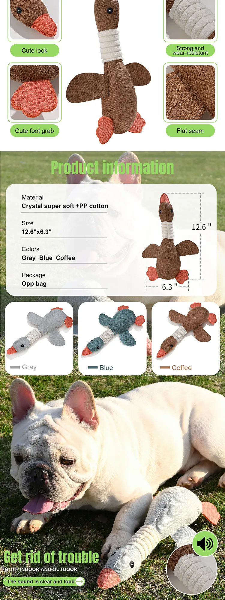Dog geese chew toys, cute and vivid designs are very attractive to your pets, arouse their curiosity, and also help tooth training and relieve boredom.